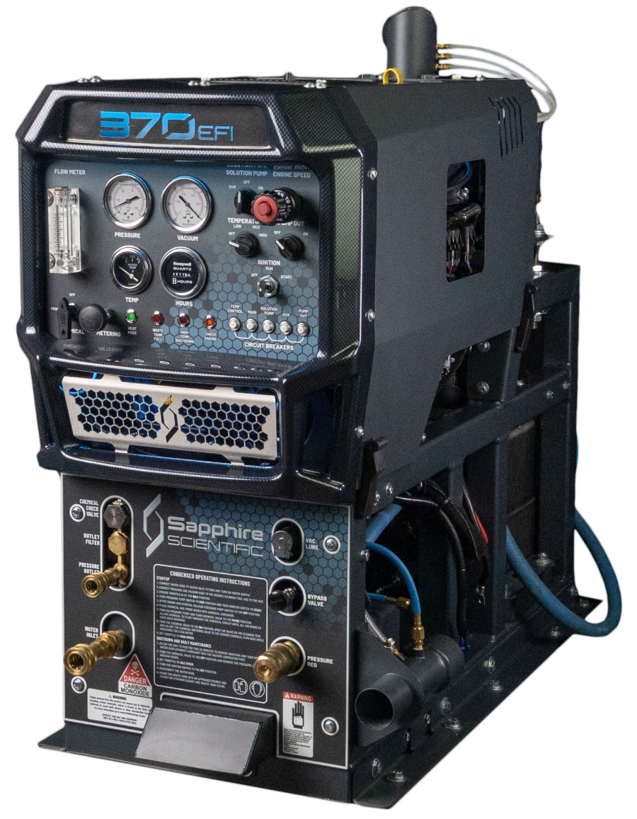 Critical exhaust components are coated with Cerakote, which lowers temperatures by 35%, making the van cooler and safer, plus ensuring less wear on truck mount parts. The 370 EFI also includes the Sapphire Scientific patented heat exchanger and cooling belt technology.